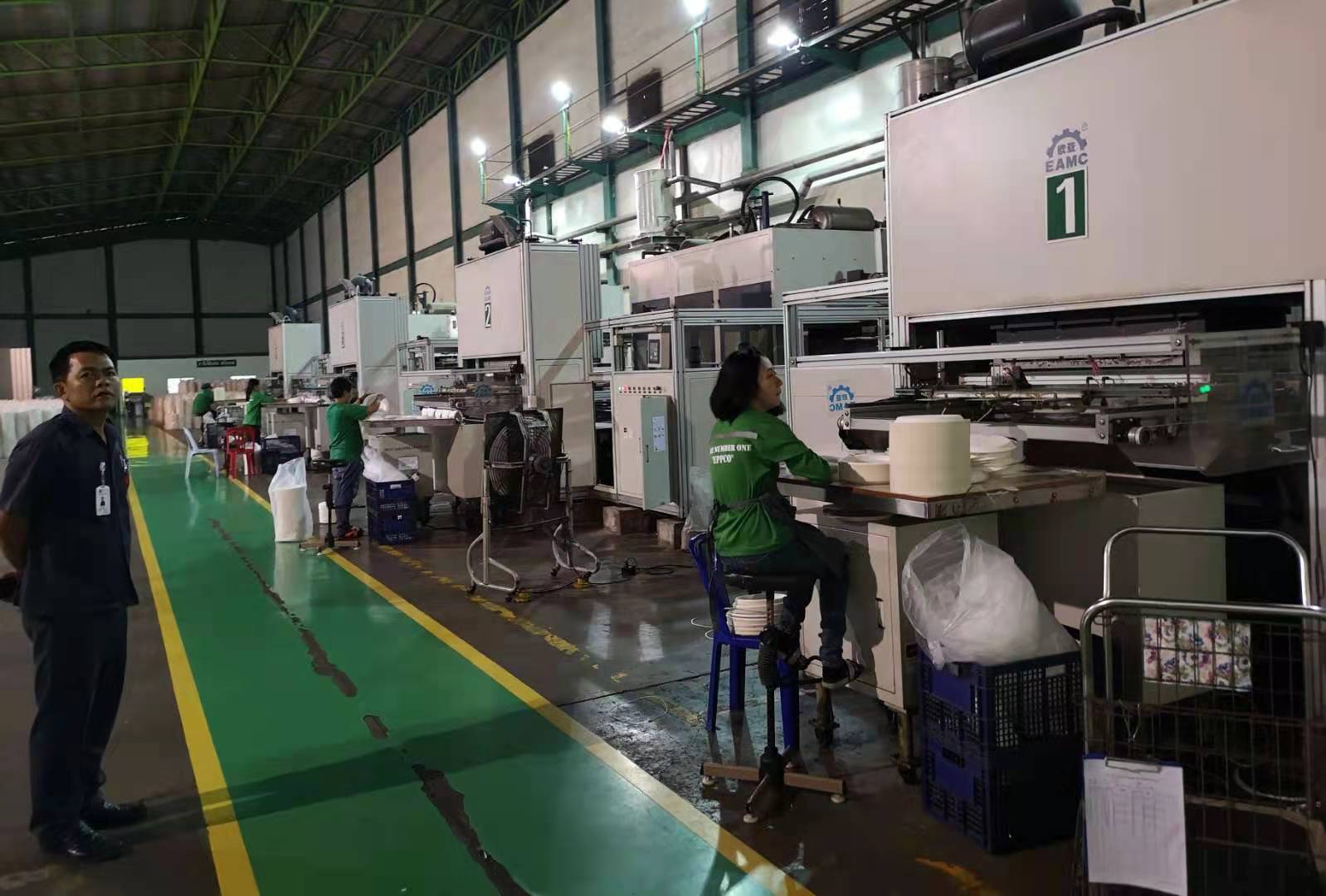 2016-8,泰國(guó)著名蔗渣漿廠EPPCO紙漿模塑項(xiàng)目,第一期購(gòu)買(mǎi)4條EAMC生產(chǎn)線投入使用。EPPCO是泰國(guó)最大的蔗渣漿廠,中國(guó)許多高端的紙漿模塑廠家都采用EPPCO生產(chǎn)的蔗渣漿。目前已經(jīng)投入使用。之后第二期又購(gòu)買(mǎi)了浙江歐亞聯(lián)合裝備集團(tuán)有限公司輕工50條紙漿模塑生產(chǎn)線。
