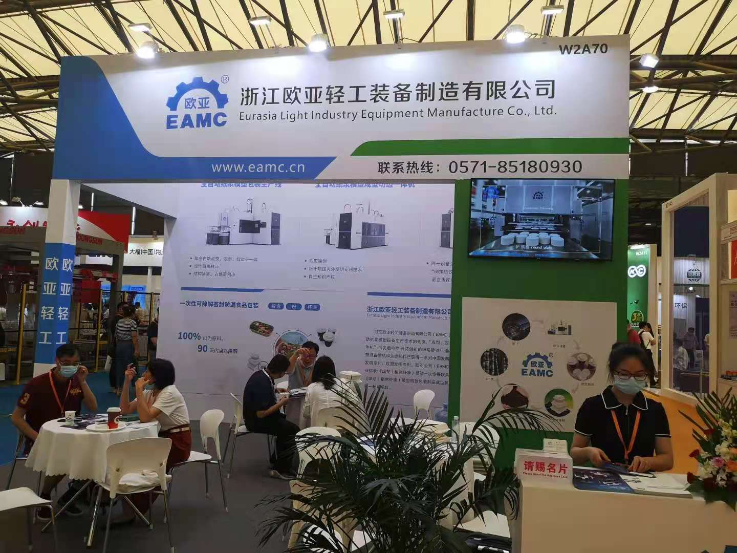 7月14日至16日,2021中國包裝容器展在上海新國際博覽中心舉行,iPackCon中國包裝容器展覽會是國內專業(yè)的全品種包裝容器專業(yè)展示平臺,集中展示紙、塑料、金屬、玻璃等材質包裝容器,創(chuàng)新包裝設計,包裝發(fā)展趨勢以及整體包裝解決方案。隨著國際國內禁塑料工作的推進,可完全自然降解的植物纖維模塑制品在包裝領域的地位凸顯。參加本次會展的有國內植物纖維(紙漿)模塑制品制造商、設備制造商、助劑供應商。歐亞輕工(EAMC)參加了本次會展,展會上展出了EAMC“成型、定型、切邊、打孔”一體機和EAMC紙漿模塑杯蓋生產技術。